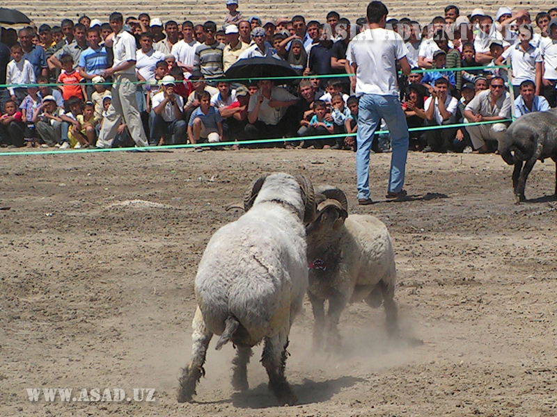 Since ancient times the sheep fighting has been an important part of the Uzbek traditions. There has been no holiday that went without this spectacle. The sheep fighting is an attractive and excitable performance. The spectators boom, whistle and stamp their feet encouraging the contestants.